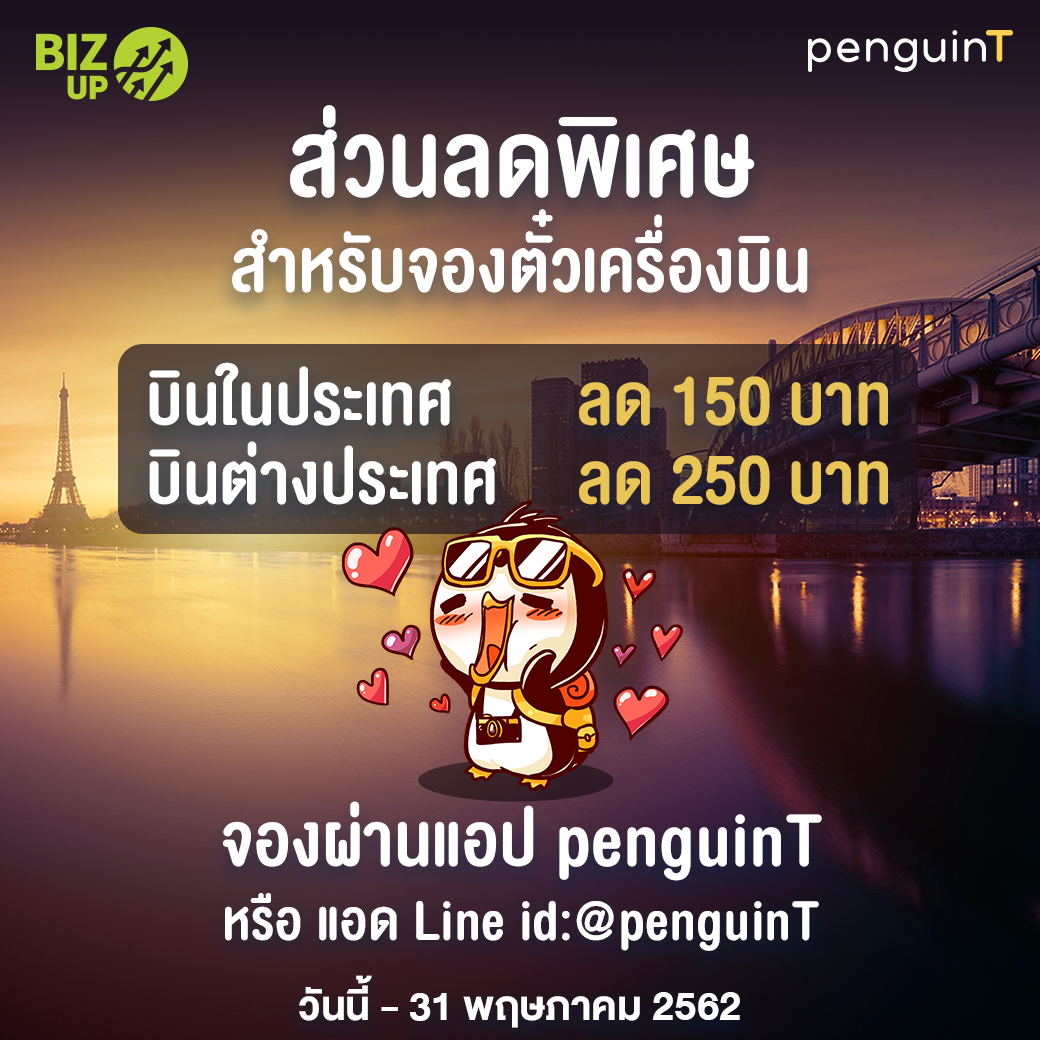 penguinT(เพนกวินต์) : ค้นหาตั๋วเครื่องบินง่ายๆ เจอราคารวมทุกอย่างในหน้าแรก จองสะดวก บินสบาย ลูกค้า AIS BIZ UP รับส่วนลดพิเศษสำหรับการจองตั๋วเครื่องบินภายในประเทศ และต่างประเทศ