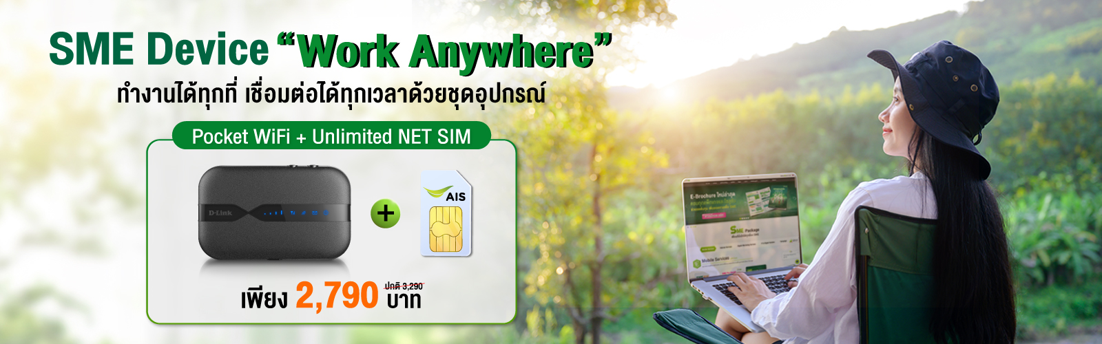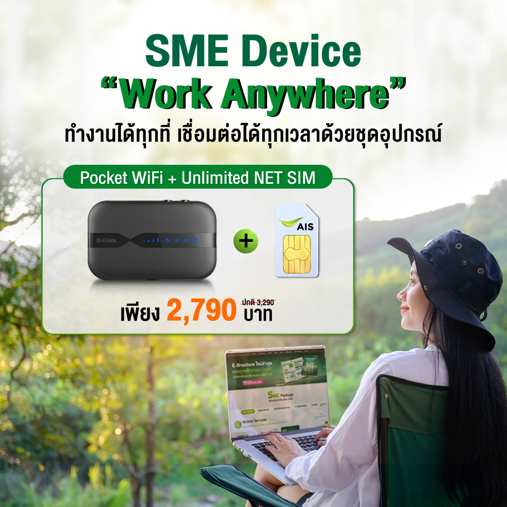 สั่งซื้อชุดอุปกรณ์ D-Link Pocket WiFi + เน็ตซิม จาก AIS SME รับส่วนลดเพิ่ม 500 บาททันที จ่าย เพียง 2,790 บาท จากราคาปกติ 3,290 บาท ดังนี้